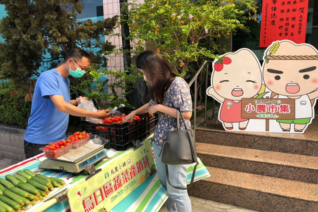 烏農市集於每週五上午於農會本會大樓門口,展售產銷班青農自產自銷鮮採蔬果。