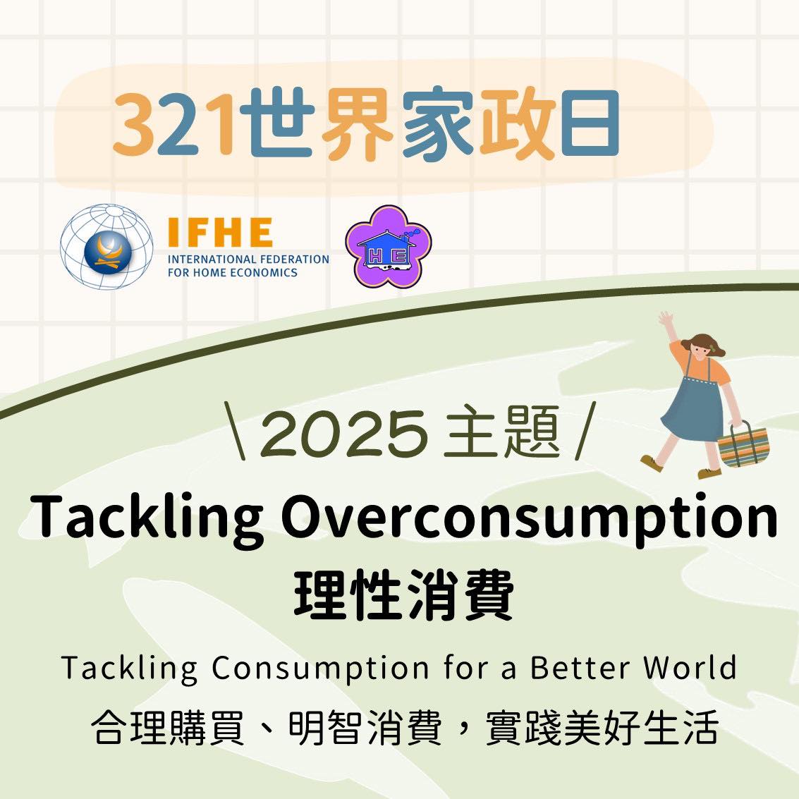 每年的3月21日 世界家政聯盟訂為「世界家政日」 2025年度主題是:Tackling Overconsumption – 理性消費 倡導「合理購買、明智消費、美好生活實踐」